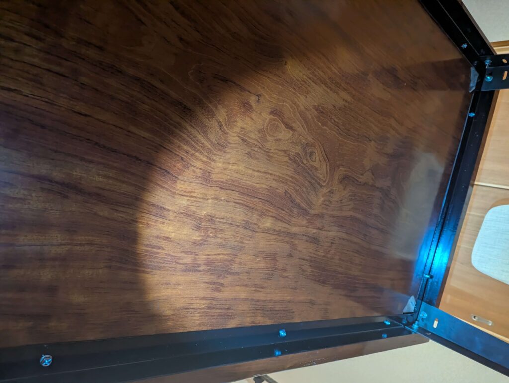 脚は、今までダイニングテーブルとして使用していたフランフラン フェールアイアンダイニングテーブル (マッドブラック)から外した脚4本を使用しました。