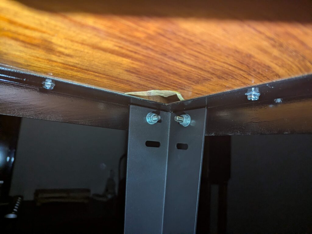 テーブル枠にドリルで穴をあけ、天板はとフランジタッピング6×30mm 10本で固定しました。
