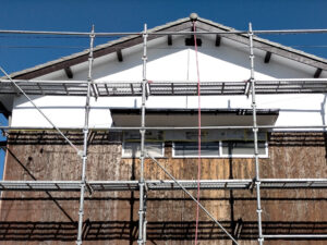 東面の焼杉板塗装では、足場の必要はありませんでしたが、西面は足場業者へ依頼しました。